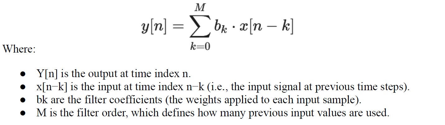 Mathematically, the output y[n] of an FIR filter is given by the following equation: